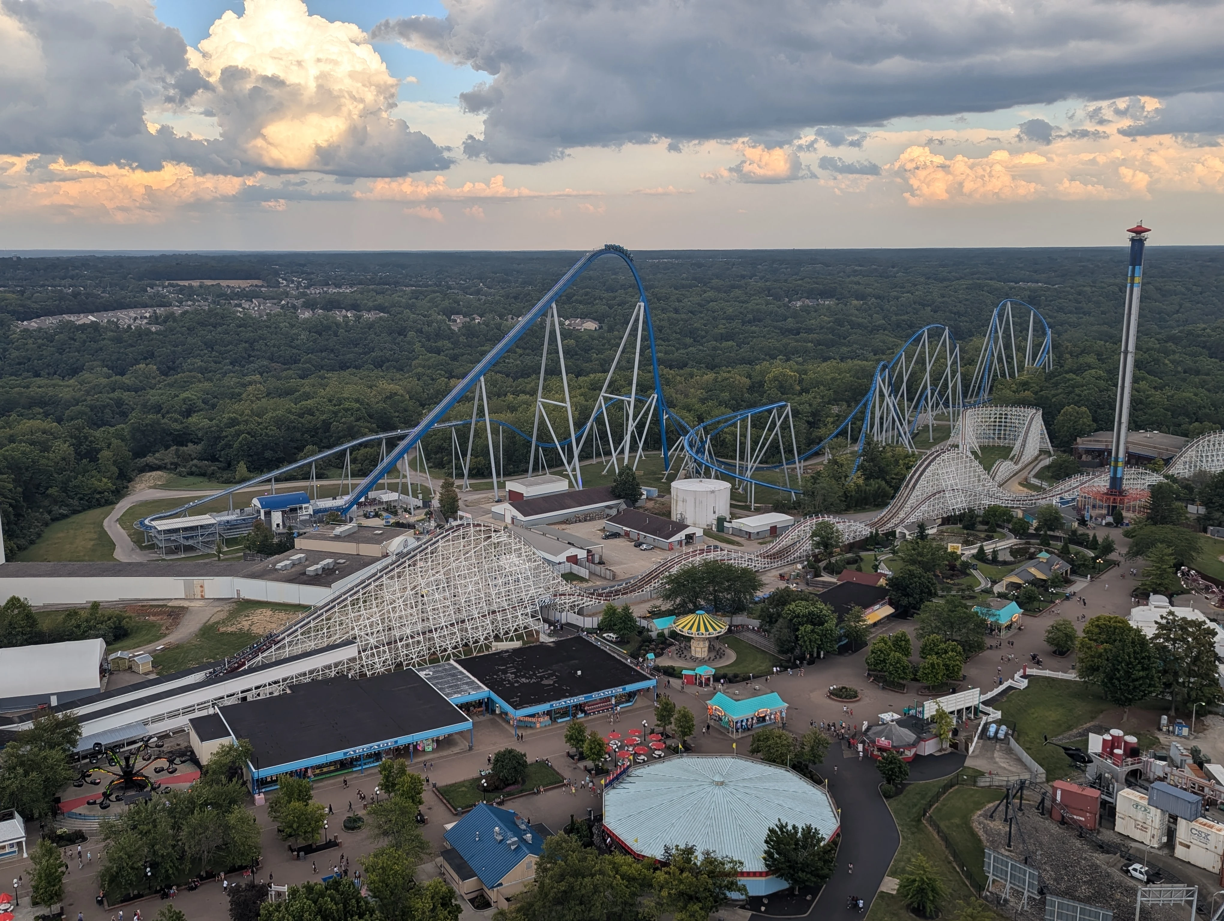 The train leaves the station and climbs a 287 ft tall chain lift hill. At the top, riders plunge down a 300 ft drop at an 85-degree angle, reaching a max speed of 91 mph. After passing under some black sand, the train heads through a 174 ft tall banked airtime hill followed by a 202 ft horseshoe. Riders race through a 56 ft airtime hill and a 147 ft tall airtime hill with trim a brake. Then, the train spirals through a 125 ft figure-8-like helix, also known as an ampersand turn. Following that is an on-ride camera which takes a picture of the riders. After a 90 ft left-handed overbanked turn, riders go through an 83 ft tall airtime hill before stopping at the final brake run. The train slows down on the slope and makes a left turn. Now returning to the station, riders unboard the train and exit the ride.